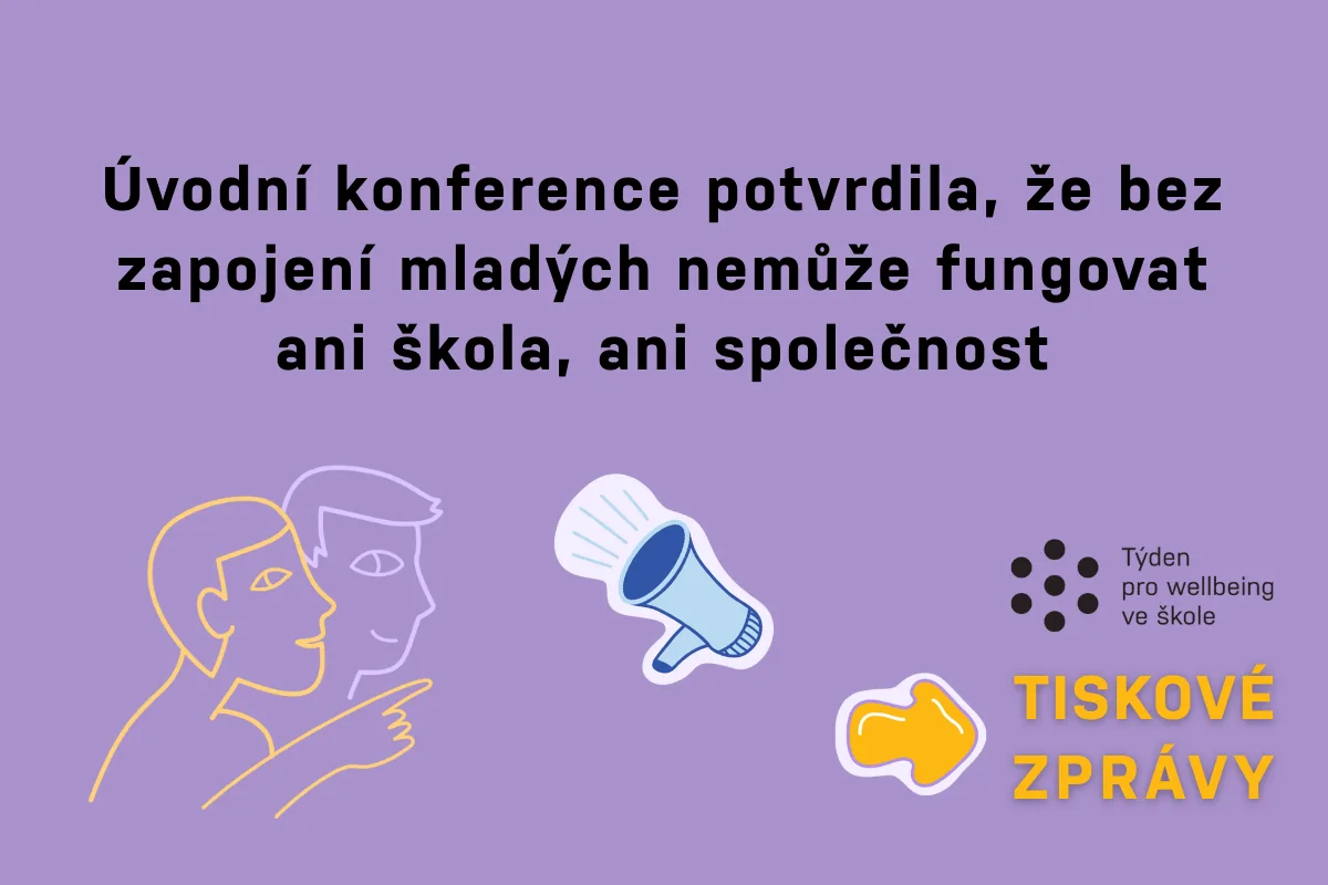 Letošní ročník Týdne pro wellbeing ve škole zahájila konference „O nás bez nás? Hlas mladých ve vzdělávání“, která jasně ukázala, že bez systematické podpory duševního zdraví a skutečného zapojení dětí a mladých lidí do rozhodování nemůže dlouhodobě fungovat ani škola, ani společnost. Setkání spojilo zástupkyně a zástupce státní správy, akademické sféry, učitelstva i studentstva a otevřelo celodenní dialog o tom, jak posilovat důvěru, odpovědnost a partnerské vztahy ve vzdělávání.